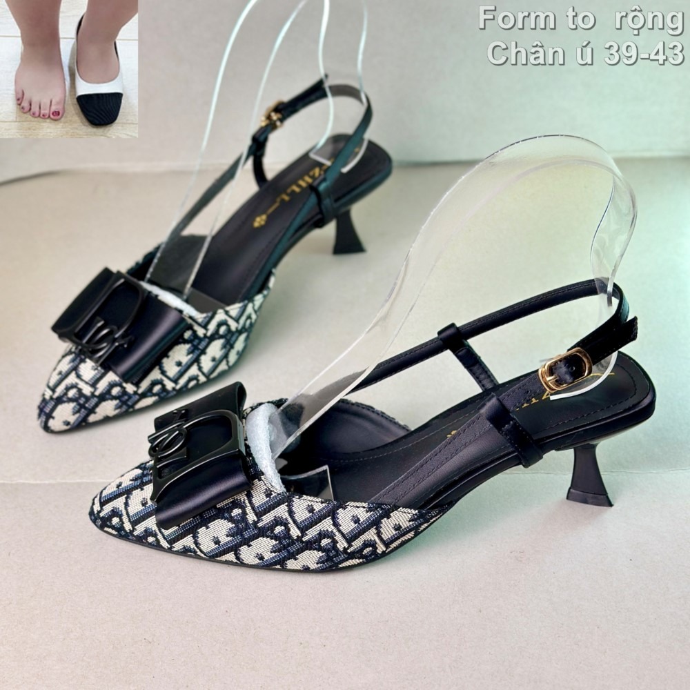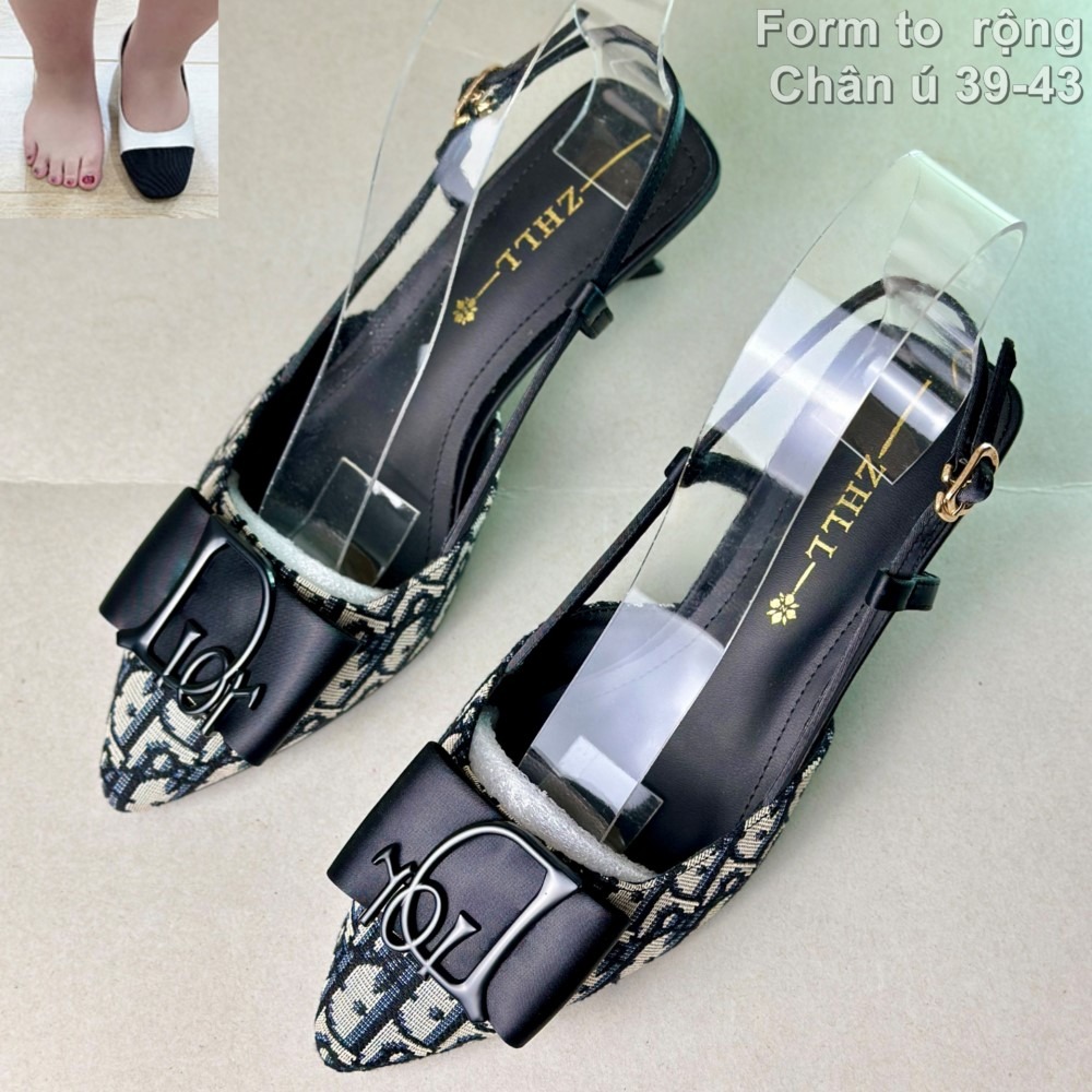 Giày nữ big size cỡ lớn 39 40 41 42 43, giày cao gót slingback đế nhọn 5cm form rộng ngang cho chị em chân to ú, women’s wide shoes for fat feet.