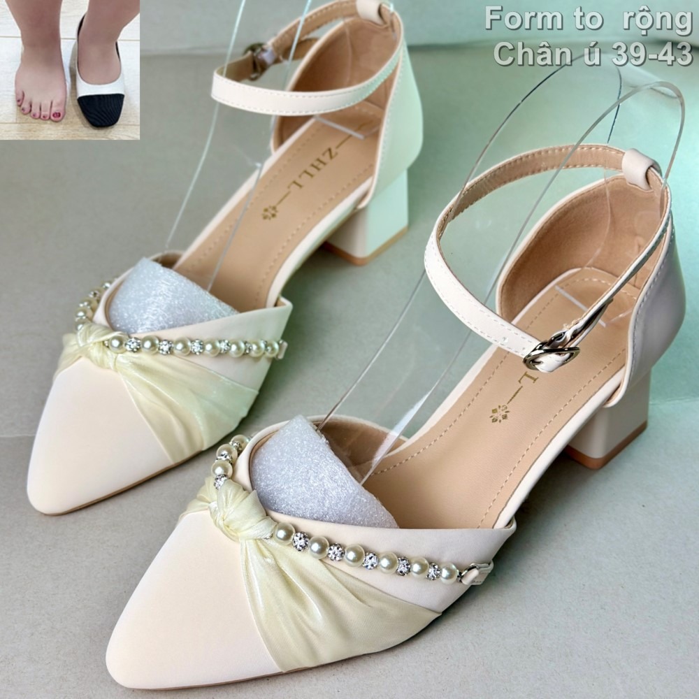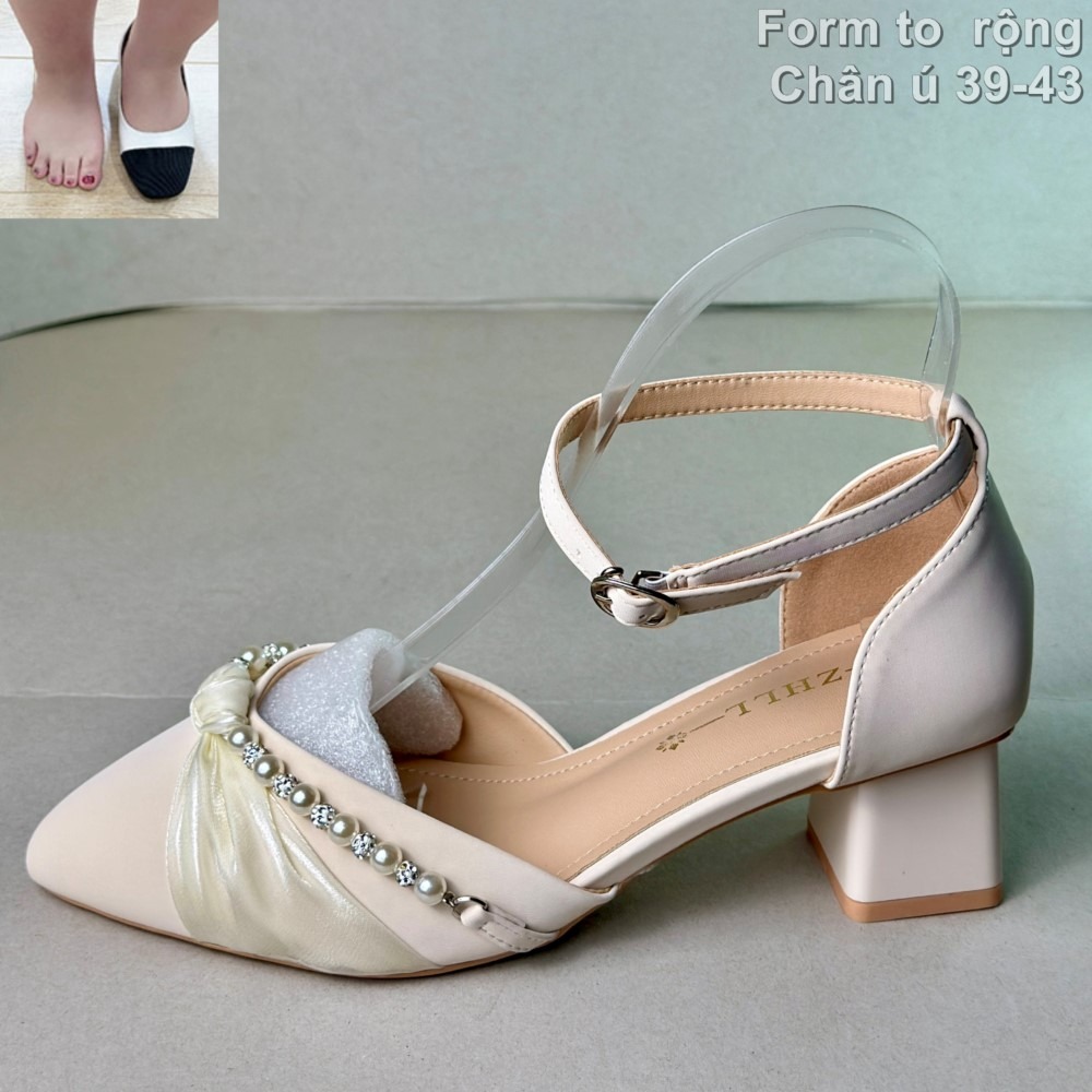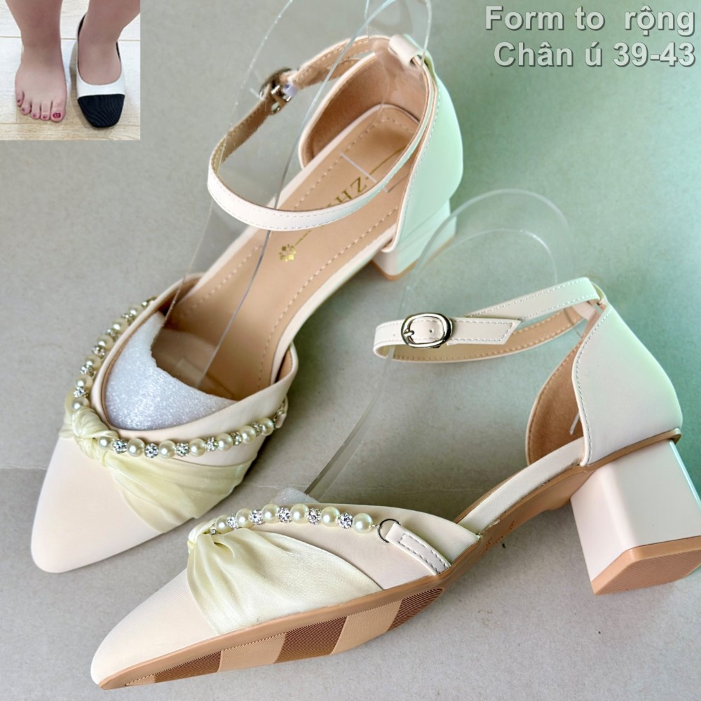 Giày nữ big size cỡ lớn 39 40 41 42 43, giày cao gót đế 5cm form rộng ngang cho chị em chân to ú, women’s wide shoes for fat feet.