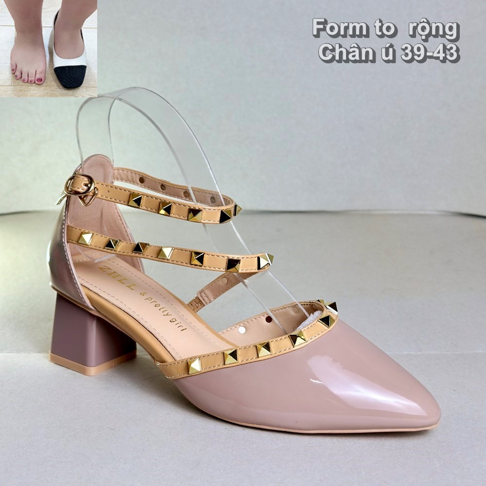 Giày nữ big size cỡ lớn 39 40 41 42 43, giày cao gót đế 5cm form rộng ngang cho chị em chân to ú, women’s wide shoes for fat feet.