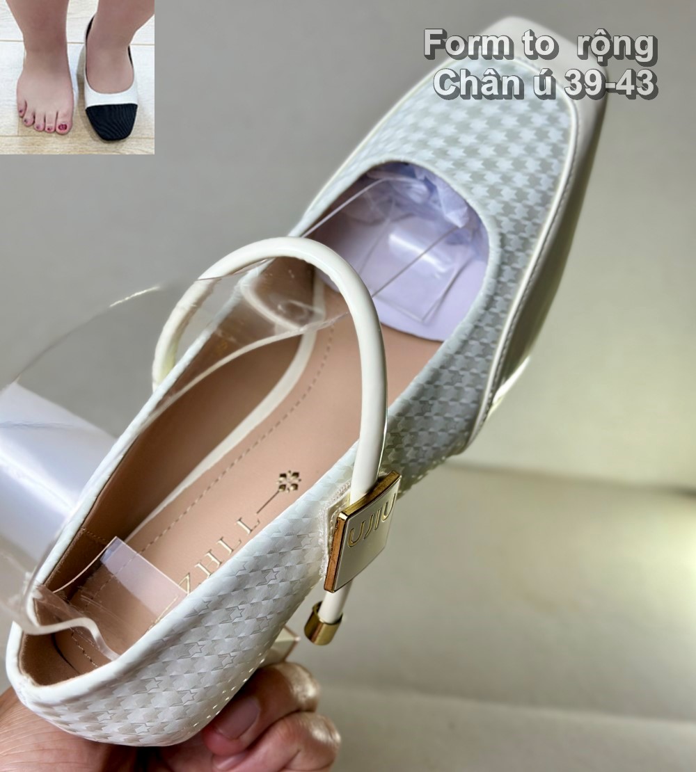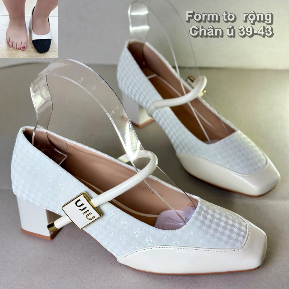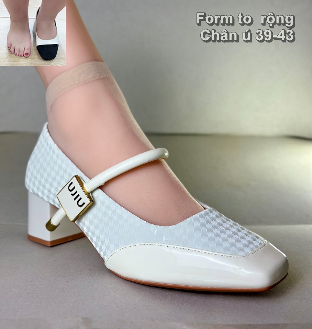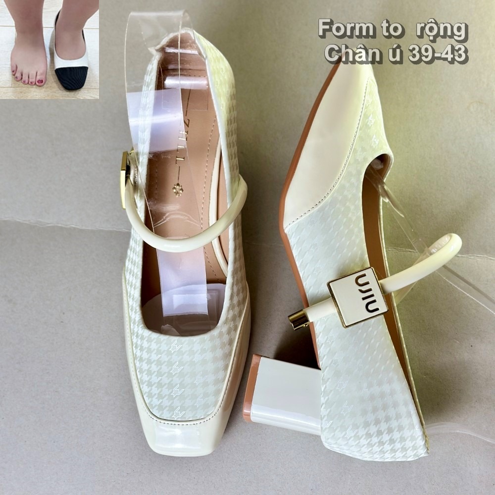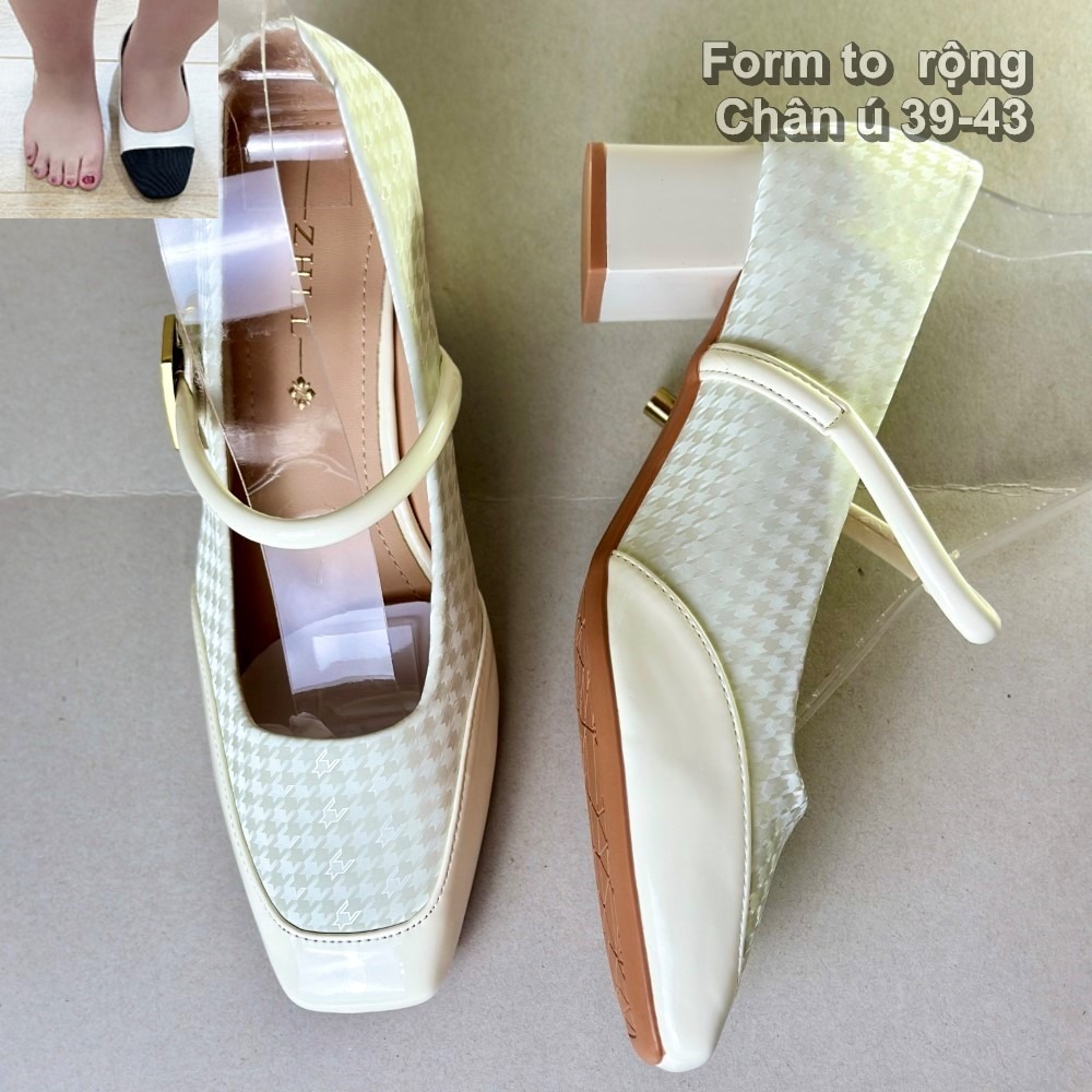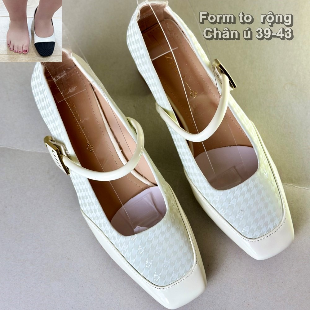 Giày nữ big size cỡ lớn 39 40 41 42 43, giày búp bê Mary Jane gót vuông 5cm mũi vuông form rộng ngang cho chị em chân to ú, women’s wide shoes for fat feet.